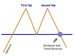 Sinal negativo de curto prazo, em que após a subida de um activo, verifica-se uma consolidação (1º ombro), a ação regressa à uptrend (normalmente testando uma resistência anterior, visualizando-se numa forma de arco), retomando a seguir um nível de cotação equivalente à primeira consolidação (2º ombro), antes de empreender uma descida consistente até ao suporte que corresponde a mínimos do neckline.