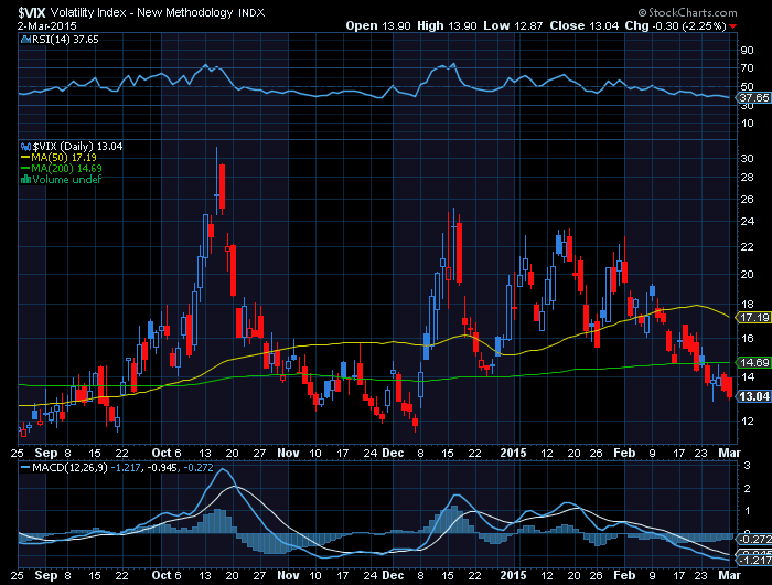 II - A confiança excessiva nos mercados vai dar uma correção ainda em Março. O S&P500, o "pai" de todos os Índices encontra-se com uma volatilidade tão baixa, que em vez de ser o tradicional sinal de um lento mas confiante Bullmarket, passa a ser um sinal para se fazer o trimming de algumas posições lucrativas em ações voláteis. de resto, go with the flow apertando os trailing stops (para veres como os stops são importantes para a saúde da carteira, olha para o gráfico dos crashes).