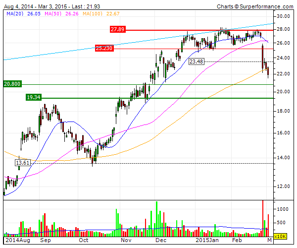 O meu mail é do dia anterior aos resultados (de dia 11), e embora esperasse a inversão de tendência do Pão de Açucar, não esperava que os resultados fossem ainda acima das minhas expectativas, representando até agora a melhor surpresa Bovespa no tocante ao 4º trim. de 2014 ((Gráfico anexo, resistência-chave 100 br, inversão de médio prazo na MM50).