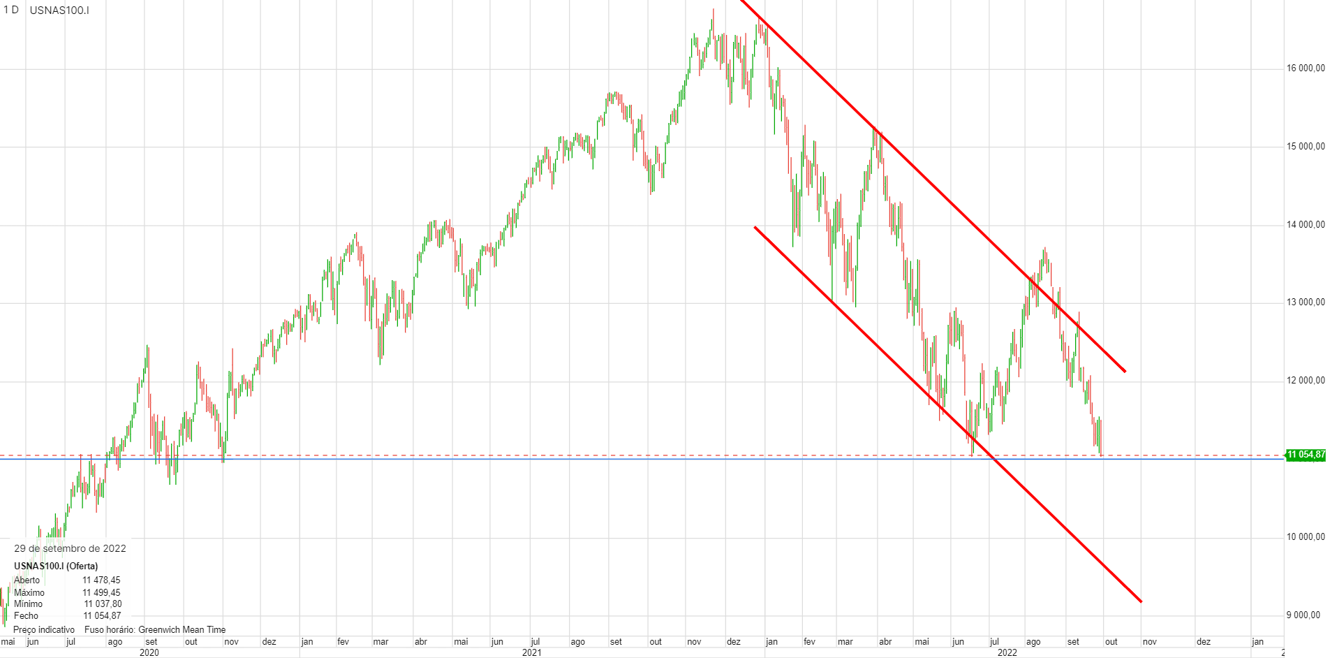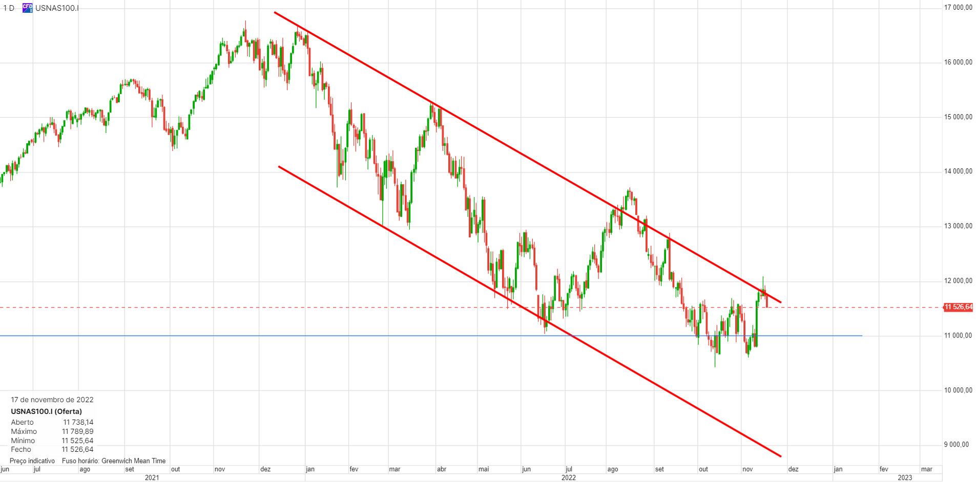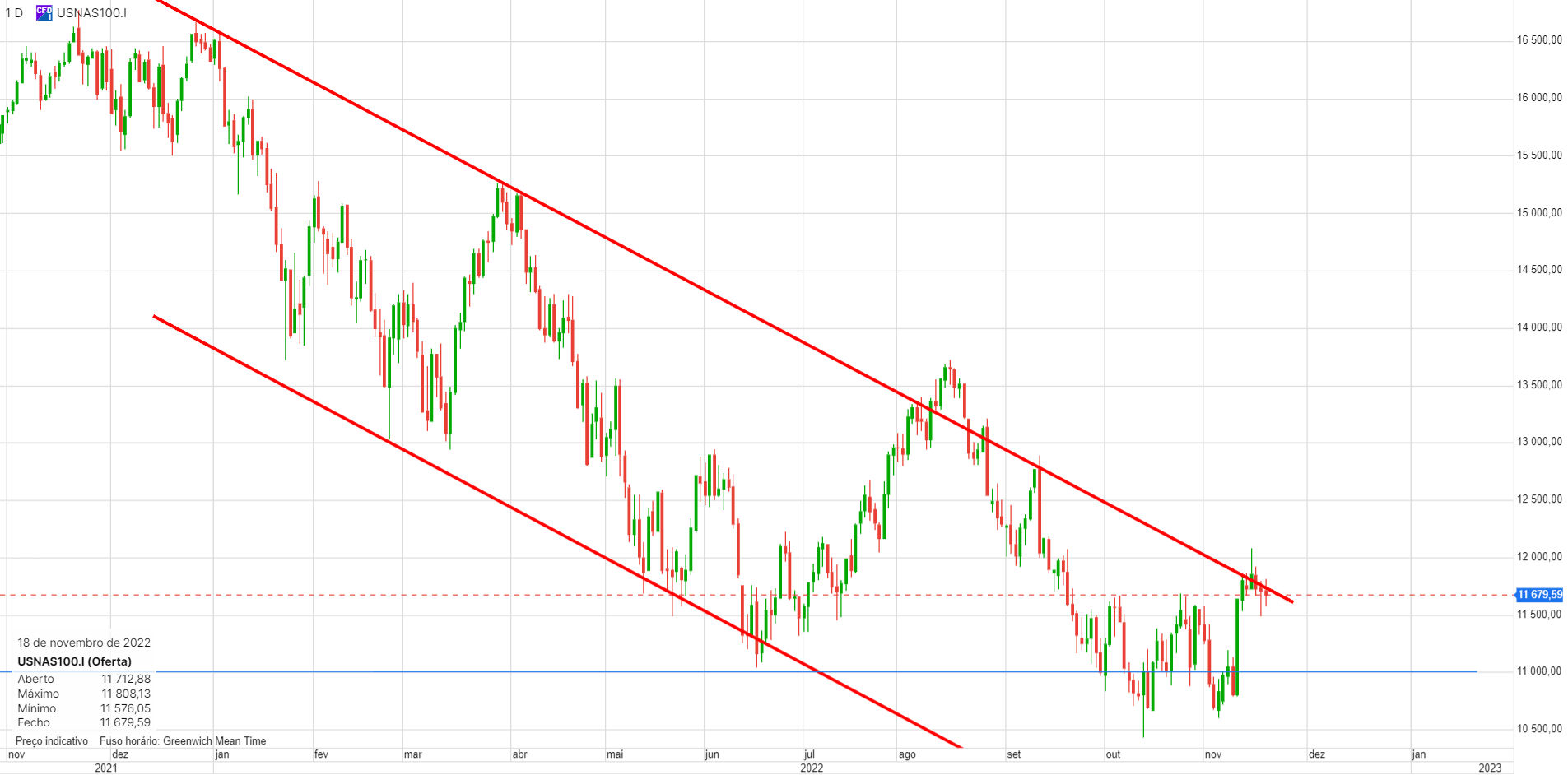 Àlvaro Escreveu:Nirsup, o Nasdaq100 prepara-se para furar os 11 000 pontos e deverá ser já hoje. A coisa tem aspeto de querer vir mais abaixo, é isso que diz a tendência e os números do emprego ajudam muito poia assinalam inflação.Um fecho abaixo de 11000 poderá significar uma queda mais profunda.