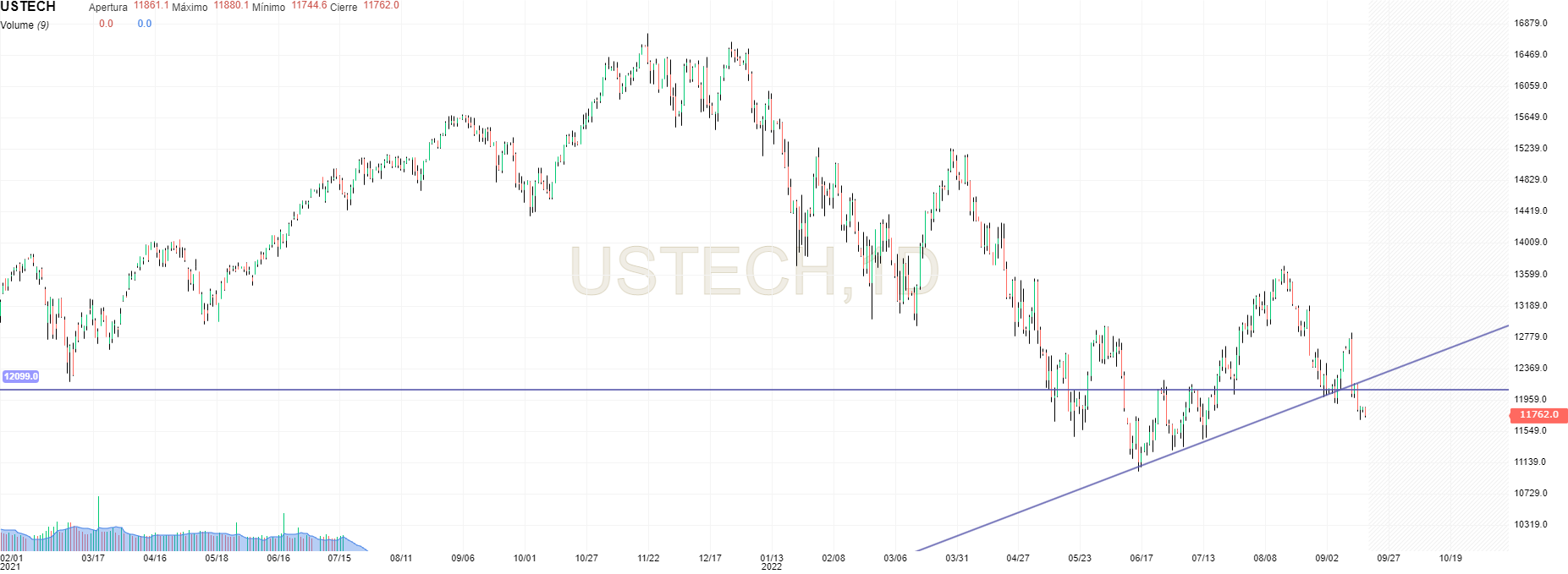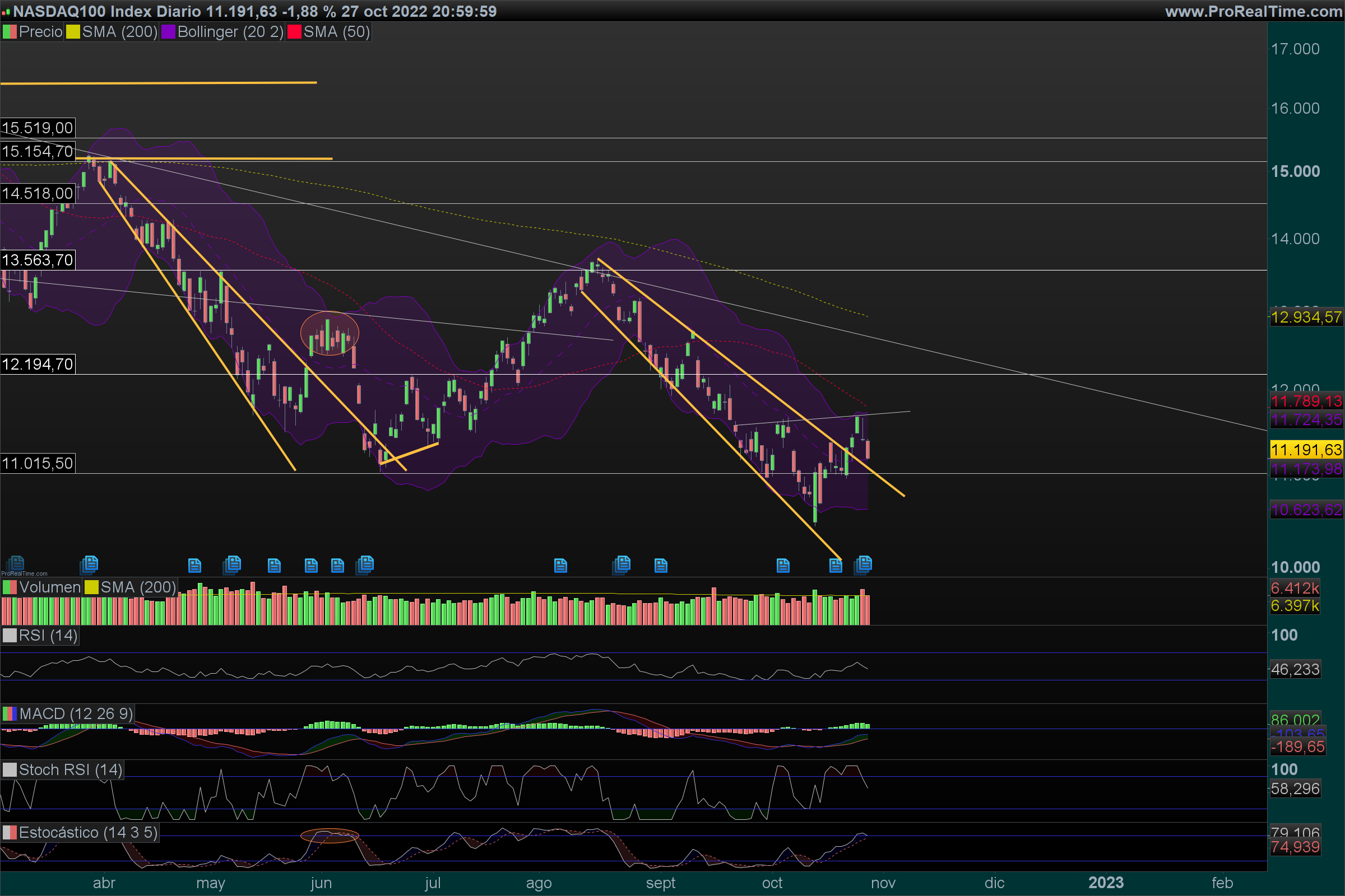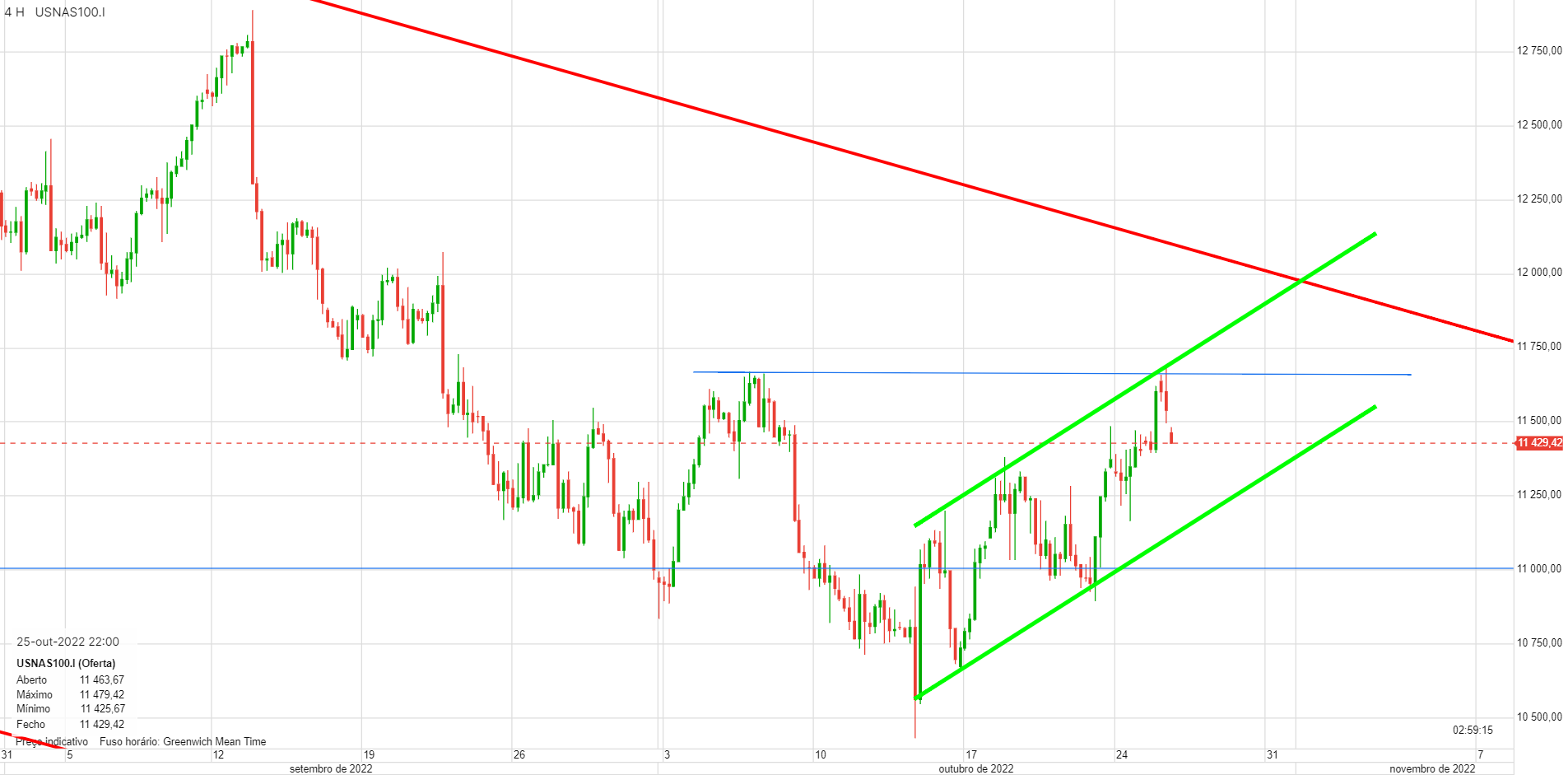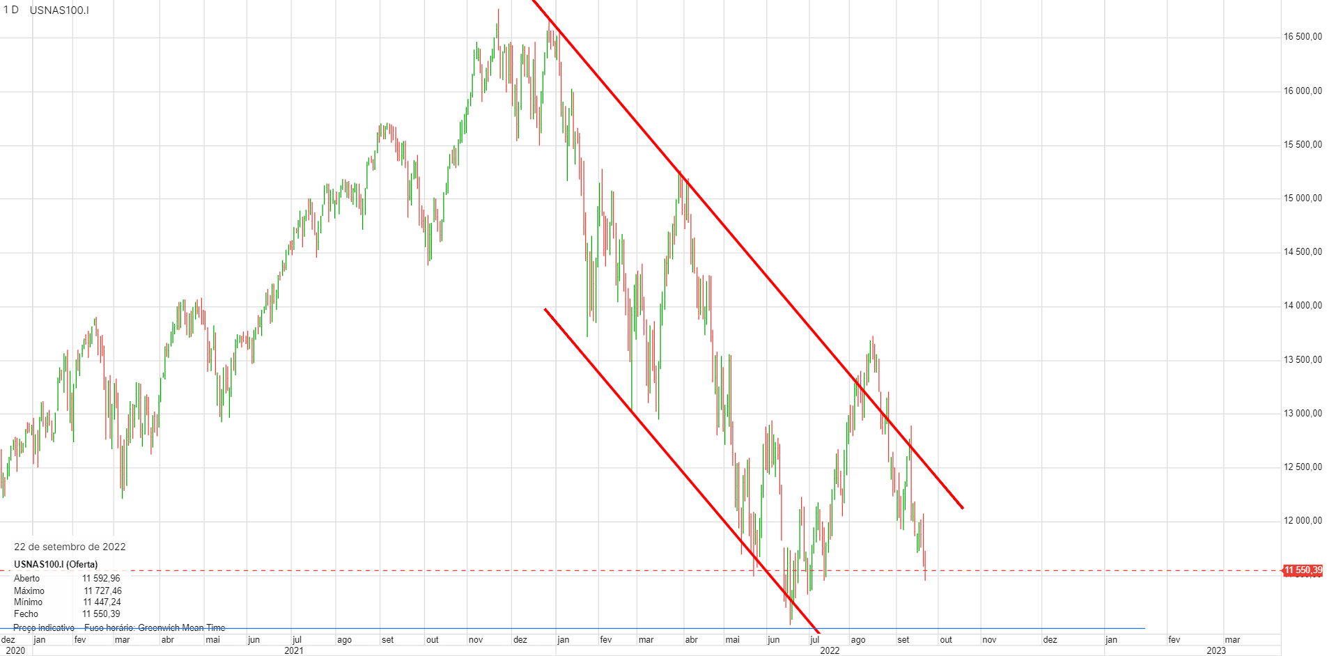 Àlvaro Escreveu:Nirsup, o Nasdaq100 prepara-se para furar os 11 000 pontos e deverá ser já hoje. A coisa tem aspeto de querer vir mais abaixo, é isso que diz a tendência e os números do emprego ajudam muito poia assinalam inflação.Um fecho abaixo de 11000 poderá significar uma queda mais profunda.