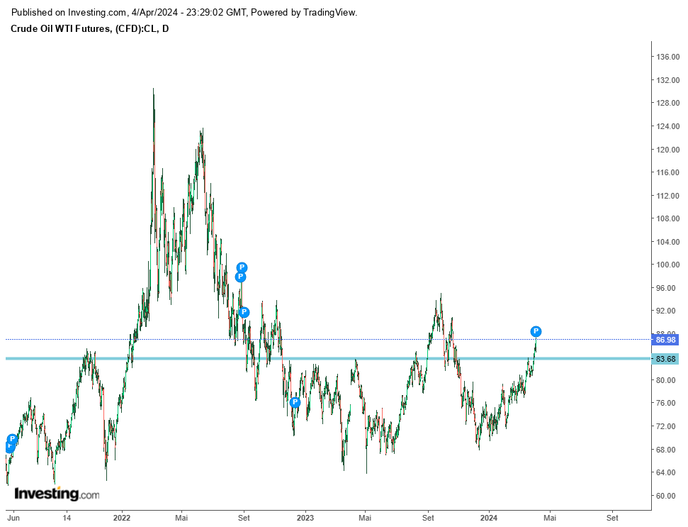 Ao menos o petróleo cede, finalmente, terreno. Será o fim de um "bull" que levou a 10% de ganhos em 30 dias!?