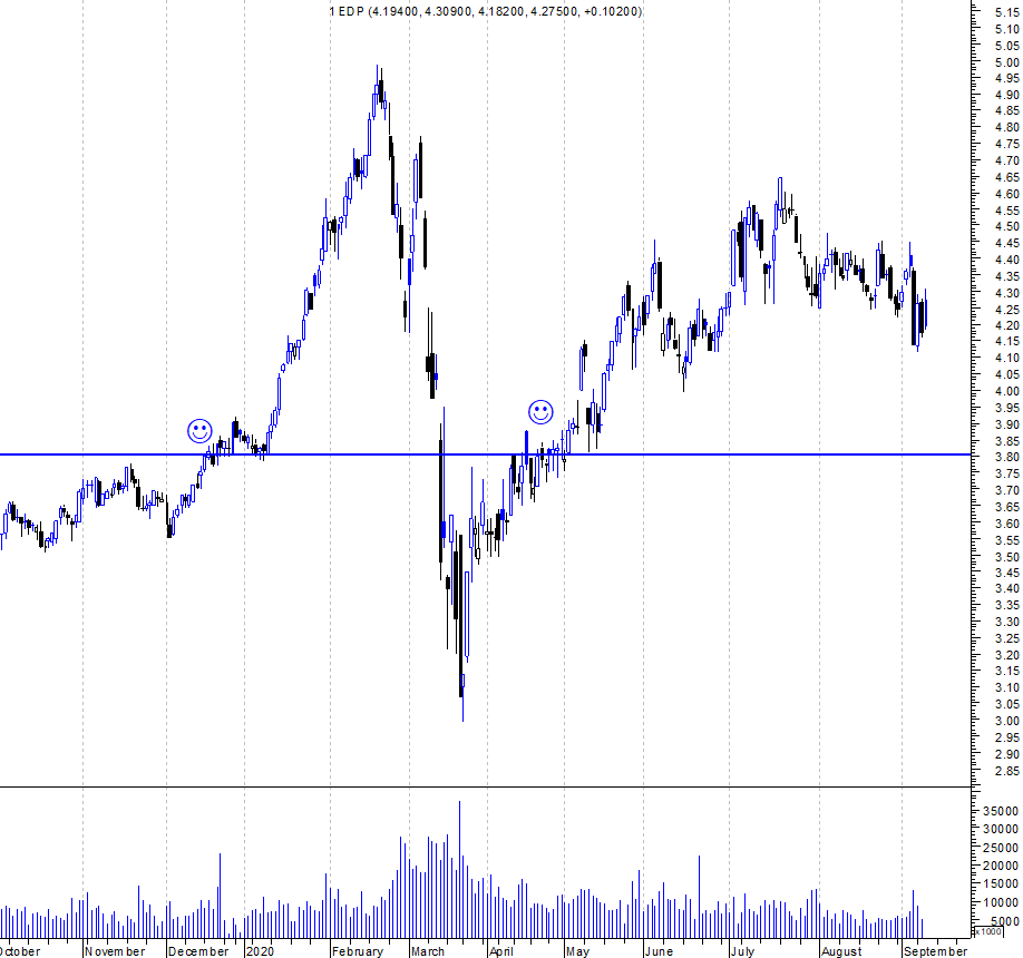 Ulisses, podes deixar aqui um gráfico actualizado da EDP e uma breve opinião?