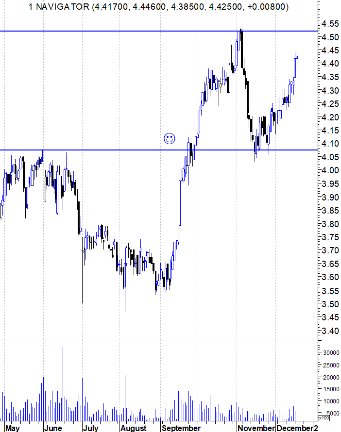 Deixo aqui os gráficos actualizados da Navigator que continua o seu "Bull Market" imaculado sem dar qualquer sinal de fraqueza. A aproximação da resistência (que também é máximo histórico) e o estado "sobrecomprado"que está quase a atingir faz com que o potencial de subida no curto prazo seja diminuto. O ideal seria algum tempo de consolidação junto à resistência, antes do ataque a novos máximos.