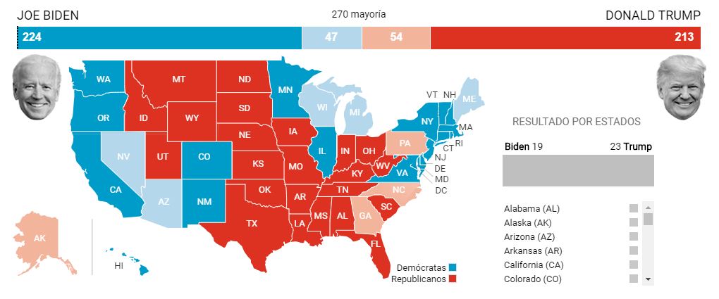 Isso nao dá 271 para o Biden? E 267 para o Trump? Empate como?