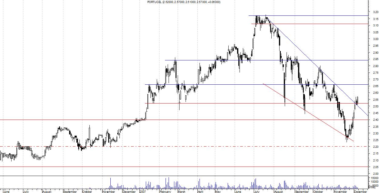 Tal como a tenho desenhada a LT está neste momento a 2.50 pelo que se a PTI se mantiver nos valores a que fechou hoje, ou acima, a correcção do dividendo não a fará, por si só, a PTI voltar à tendência anterior!!!