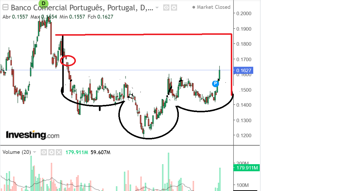 Em setembro de 2021, dá-se, o que eu considero ser, um ponto de viragem no percurso negativo do BCP, a quebra da resistência multianual, e consequentemente a sua saída da cunha descendente.