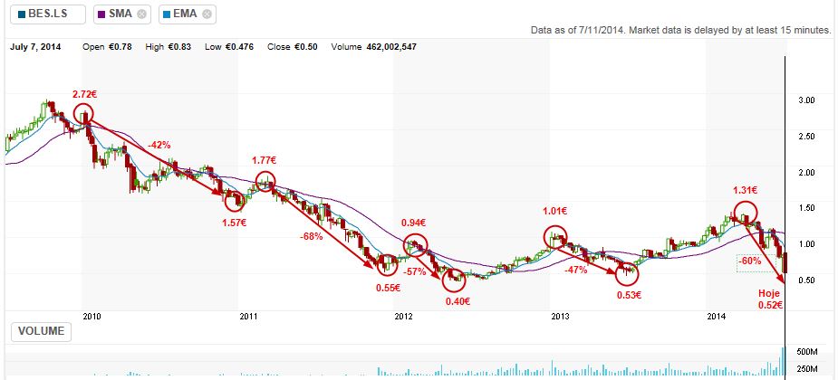 Vou considerer que o fecho semanal da semana 29 do ano de 2014 foi o ponto baixo do BES (.42).