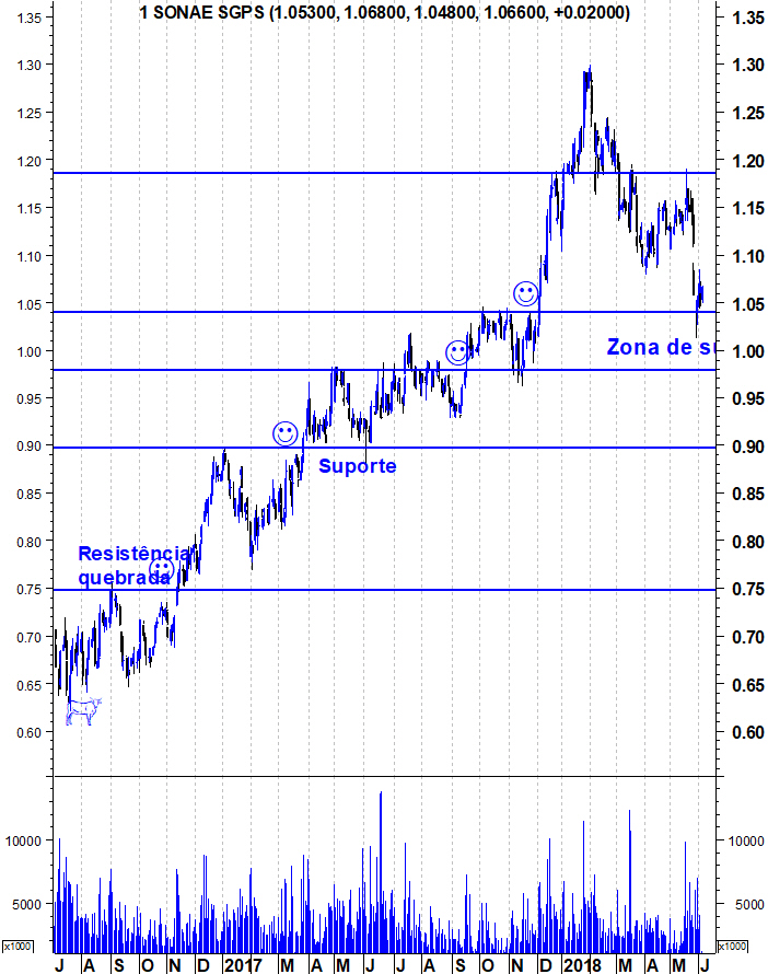 Do ponto de vista técnico os gráficos são claros. Os resultados têm melhorado embora nada de espectacular. Penso que o facto de a Sonae ter anunciado a intenção de colocar o negócio de retalho alimentar em bolsa mantenha alguns investidores cautelosos, talvez à espera de saber em concreto os moldes da operação. A acontecer seria, à partida, lá para o final do ano a apanhar a onda Novembro-Maio de maior apetite de investimento.