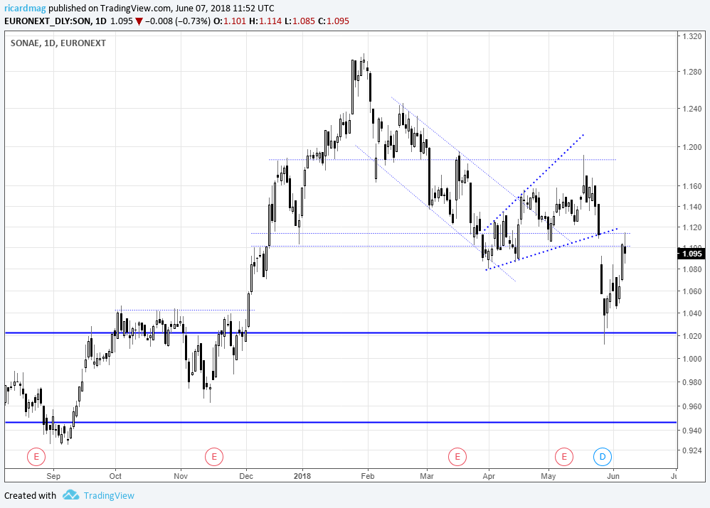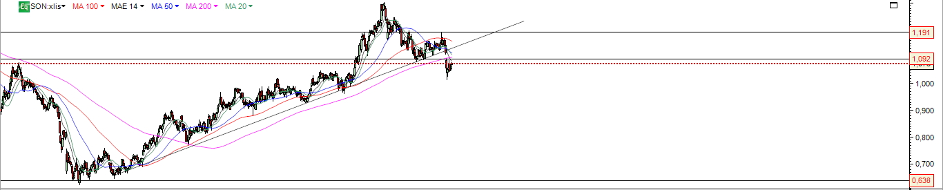 Em termos técnicos, é muito importante que esta zona de suporte entre os 0,98 e os 1,04 euros aguente. Creio que será compras junto a esta zona têm uma excelente relação rentabilidade/risco.