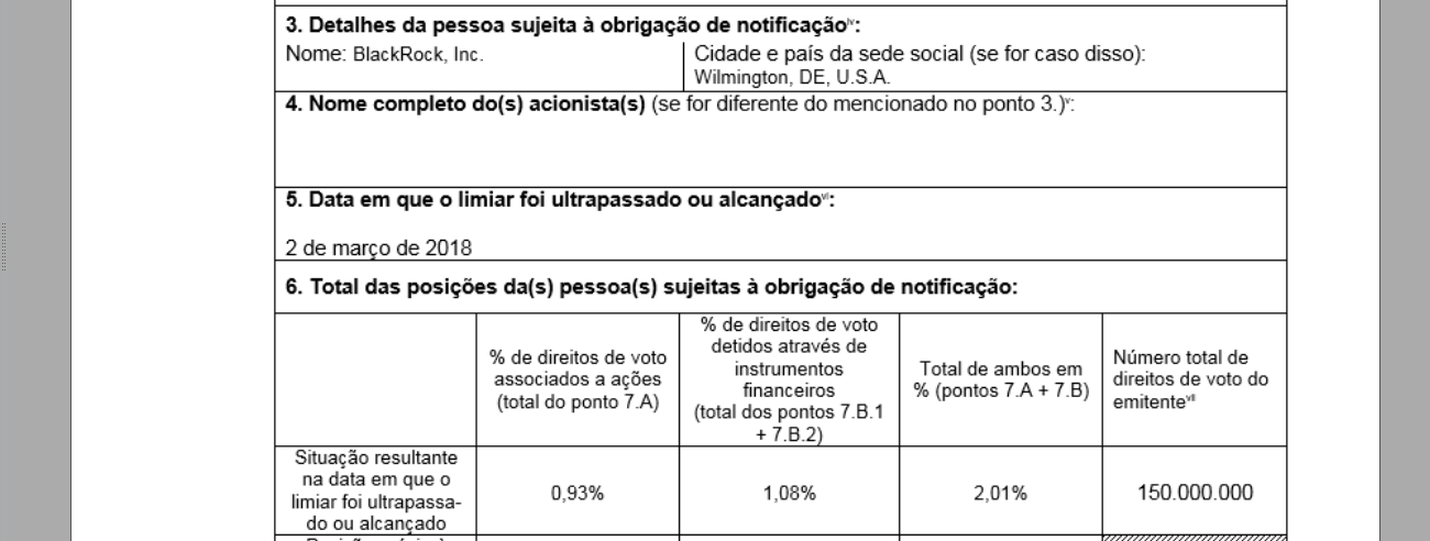 Neste momento existem algumas entidades financeiras com participações qualificadas , sendo que parte da fatia destas entidades são em instrumentos financeiros e não diretamente através da aquisição de acções e não sendo detentoras das mesmas .