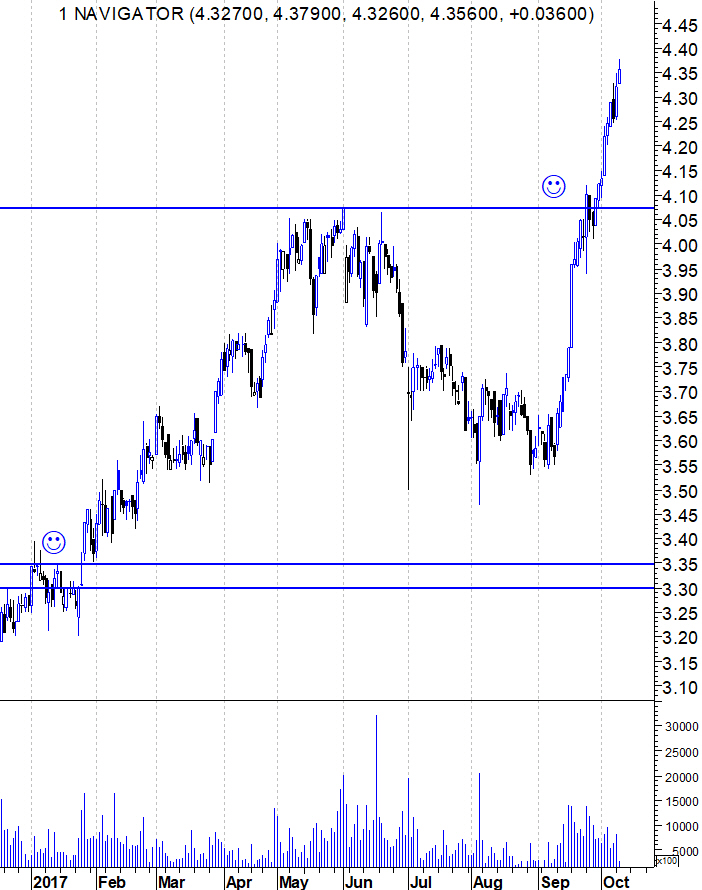 Mas deixo aqui os gráficos actualizados numa altura em que a Navigator continua a dar sucessivos sinais de força, quebrando resistências e mantendo intacto o seu "Bull Market". Mas o seu estado muito "sobrecomprado" e a aproximação do seu máximo histórico fazem com que acredite estarmos perto de uma correcção de curto prazo que, mesmo que aconteça, continua sem colocar em causa a saúde e força deste sólido "Bull Market".
