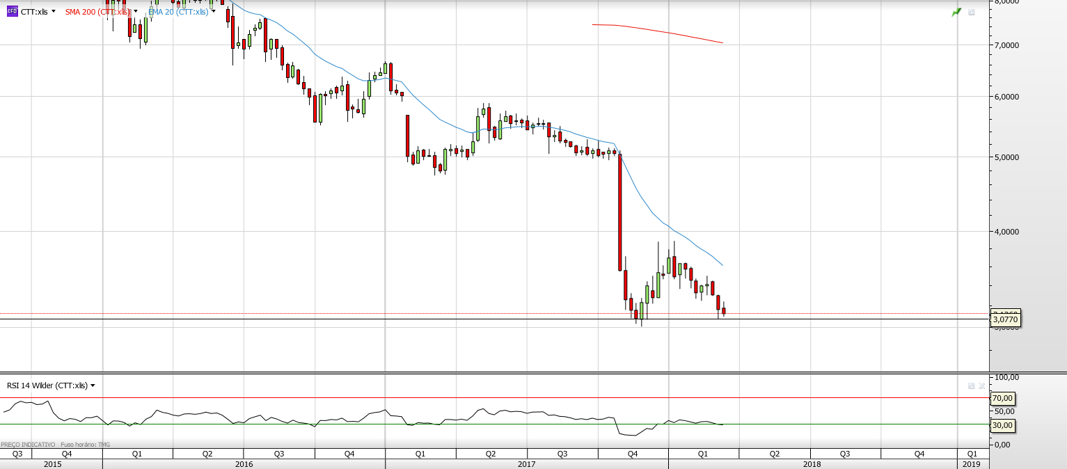 Os Ctt podem inverter tendência já a partir de amanhã; se os mercados ajudarem, especialmente se houver euforia, nessa situação até o lixo sobe. Os CTT por si próprios neste momento não têm muitas razões para inverter tendência, as probabilidades estão do lado das retrações, e continuação da tendência descendente ou lateralização.