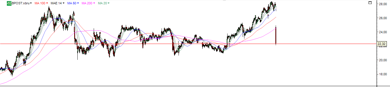 A queda hoje da BPOST , a conterrânea belga dos CTT , é brutal , eliminou num dia os ganhos que acumulou ao longo de 5 longos meses .