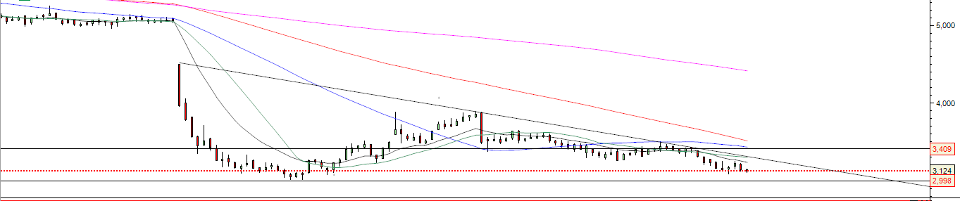 Para já a cotada continua em tendência descendente , Abaixo da LTD , sem força de compra, com os curtos novamente a aumentar para 6.97% , e balizada pelos 3 euros ( anterior mínimo ) e pelos 3.40 euros ( MM50).