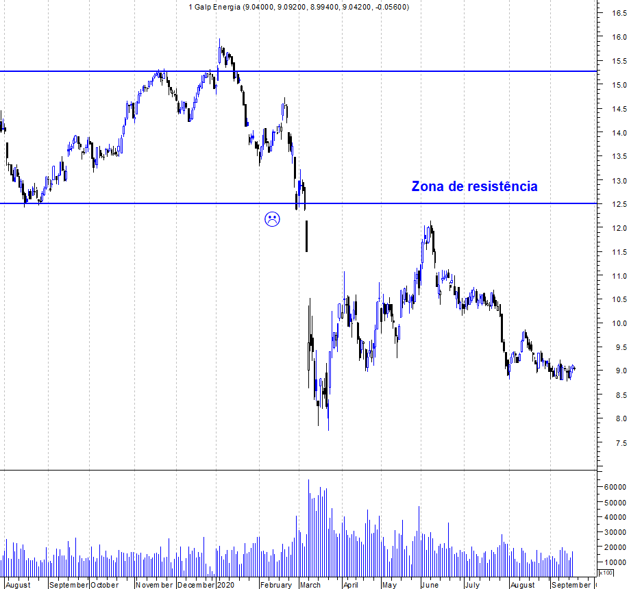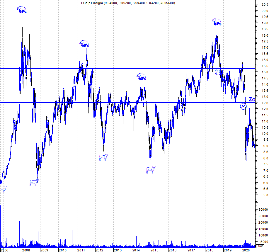 Eu sou um analista técnico que acredita que quem segue as tendências em Bolsa ganha dinheiro. Em todos os horizontes temporais, a tendência da Galp é descendente. Defendo que só quando as acções começam, a dar sinais de força quebrando resistências é que oferecem uma relação rentabilidade/risco que compense entrar nessas acções.