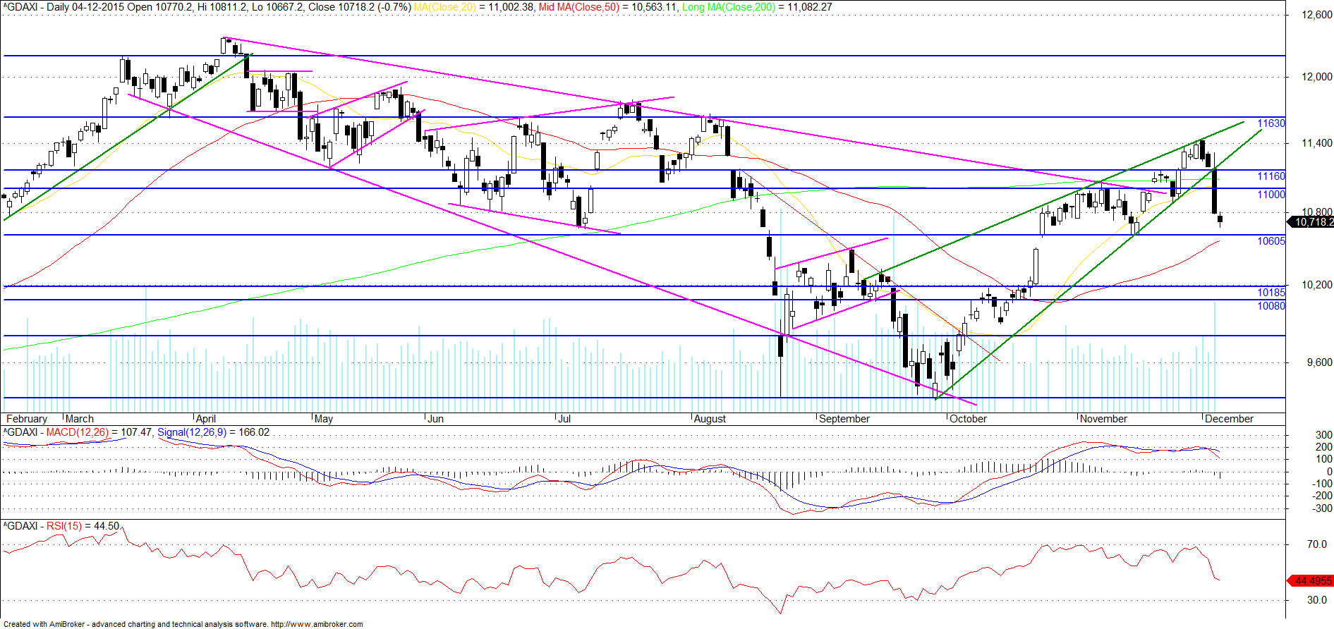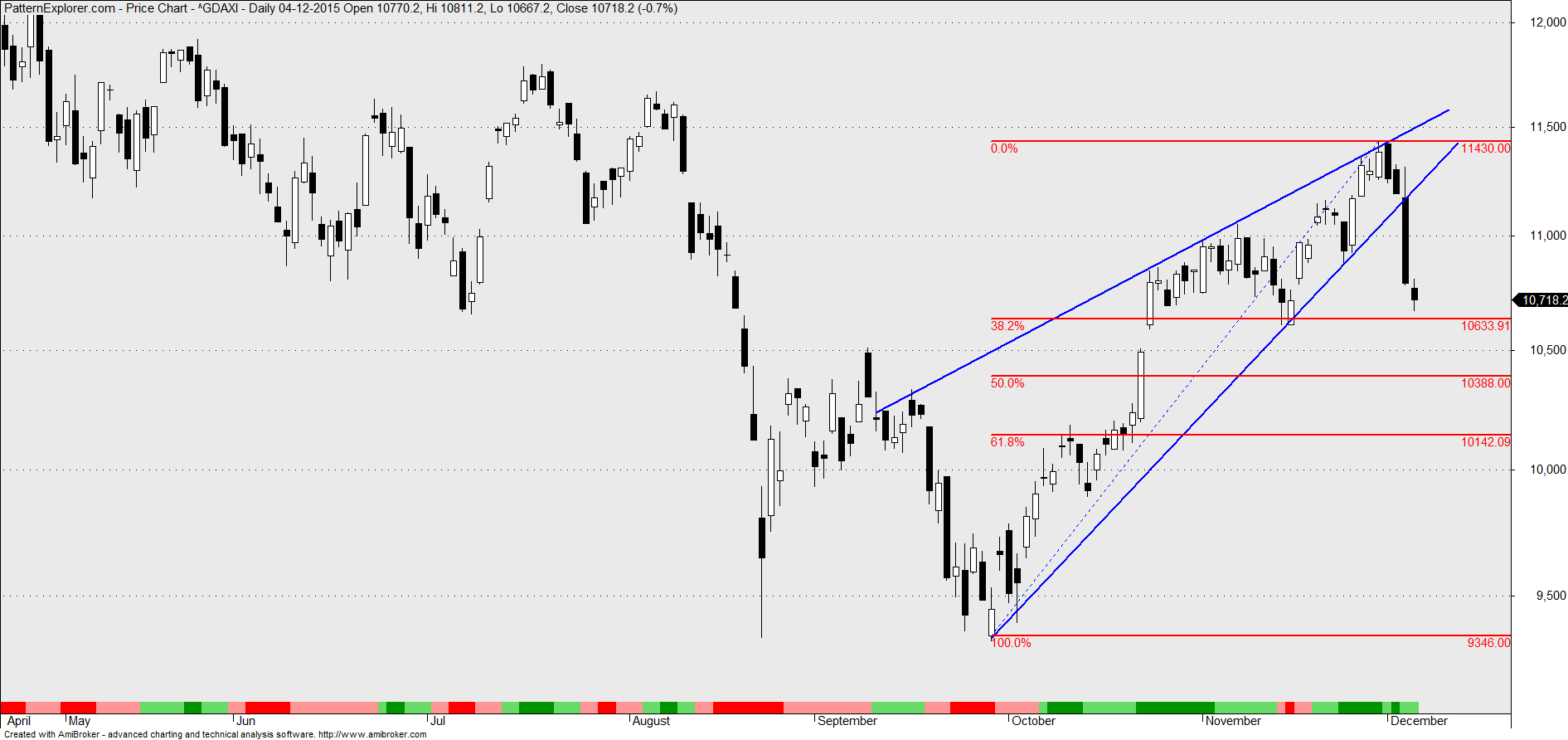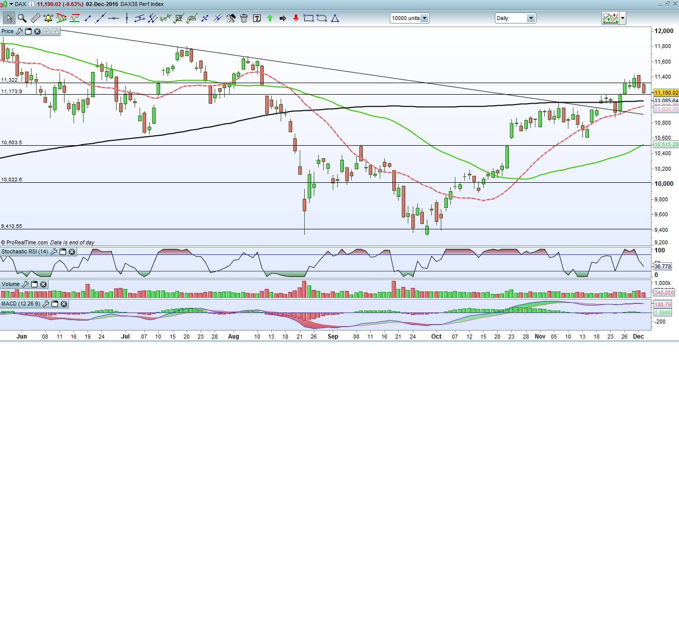 Até ver qualquer posição que assuma no dax será longa. Mudo de opinião se em vez de fazer um higher high fizer um lower low. Se fizer este lower low deve ser queimando a linha azul, as linhas verdes e o garfo ascendente.