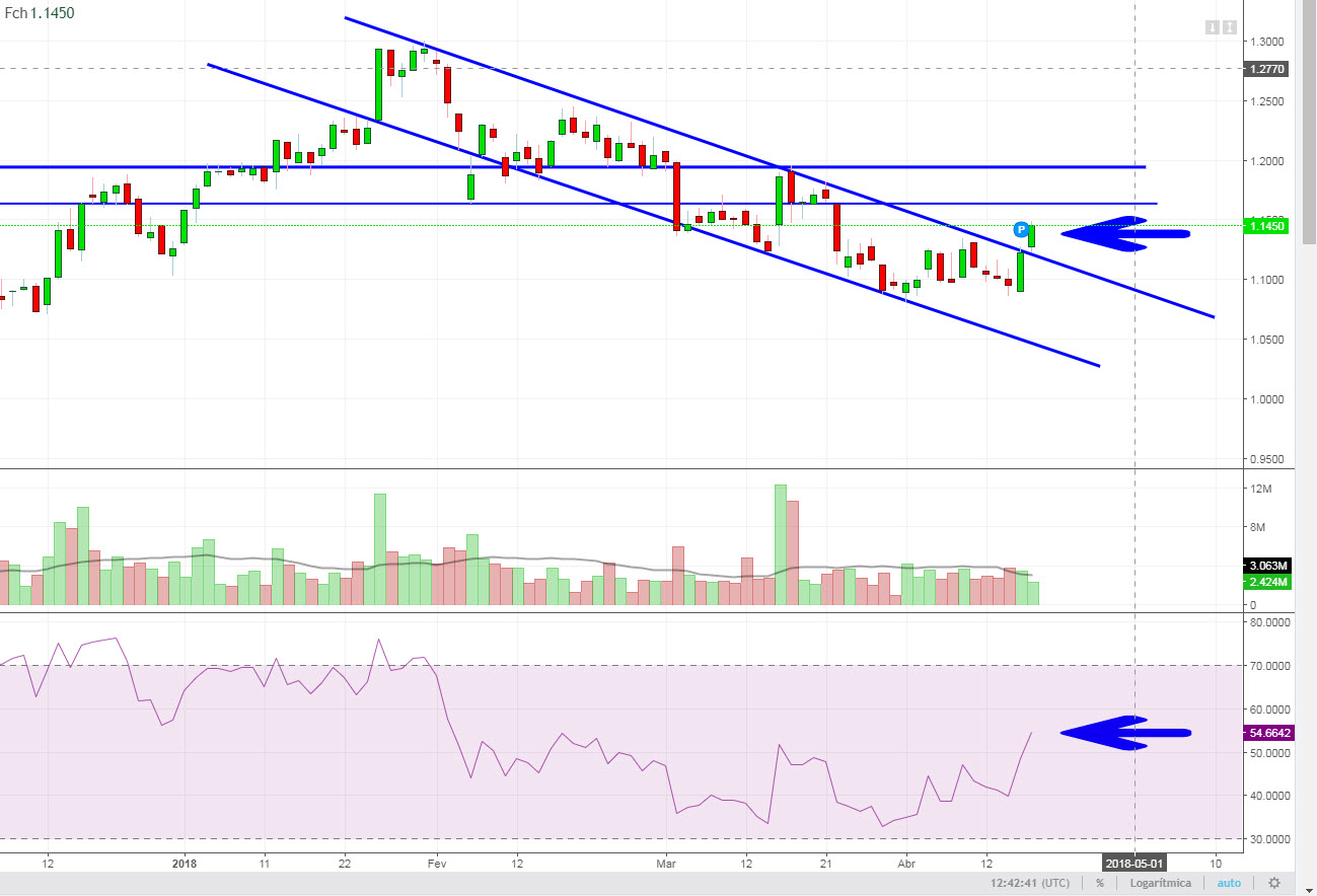 Vamos ver se consegue superar o canal descendente e sobe bem acima dos 1.13