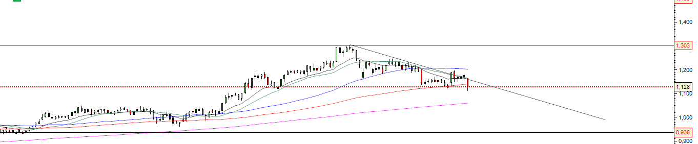 Pelo semanal não é de descartar a vinda aos 1.10€ coincidindo com a LTA de longo prazo, originado uma entrada longa com o objetivo de novos máximos.