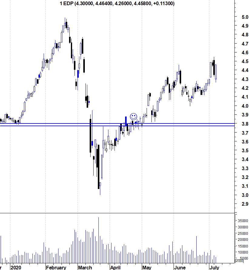 A EDP está hoje a recuperar aquilo que perdeu ontem depois da decisão do Tribunal. Deixo também o gráfico de longo prazo do "Bull Market" da EDP.