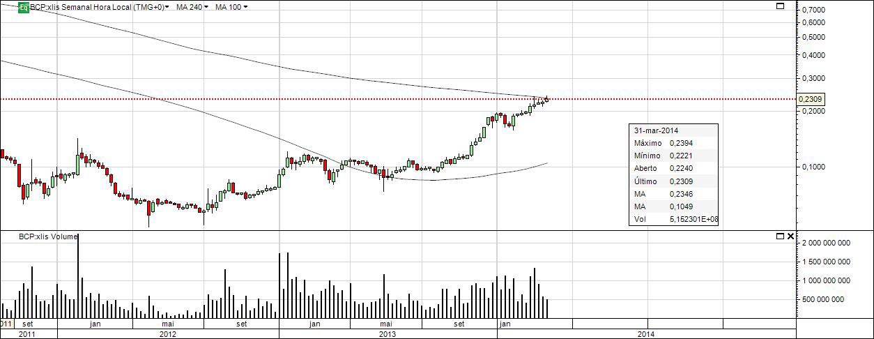 Estou longo no BCP e o que me leva a acreditar que podemos chegar a patamares mais elevados na cotação, são precisamente esta correções que o título tem feito na sua caminhada bull.