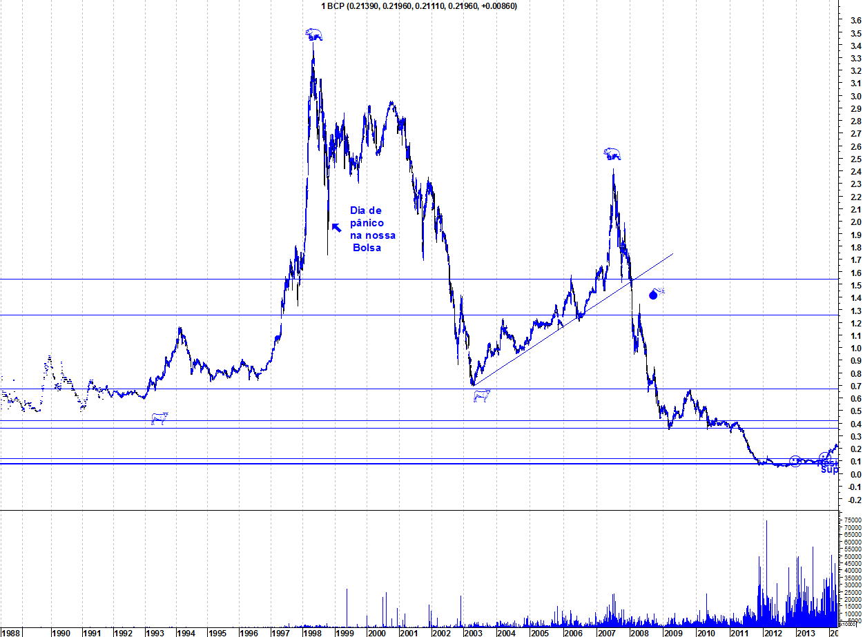 Mas ninguém sabe que valores poderá alcançar o BCP (0,5€/1€...) mesmo que estes valores sejam "surreais" num Bull Market tudo é possível.