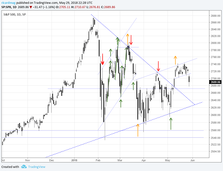 O SPX está a cair há já 2 semanas , e encontra-se abaixo da MM50 diária .