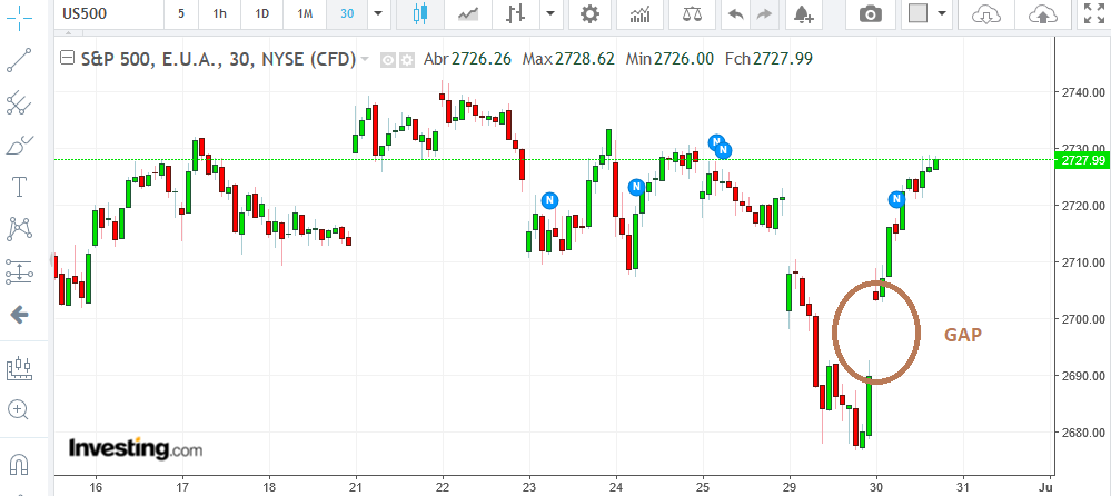 O SP500 não conseguiu superar a forte barreira estabelecida dos 2750 Pontos , estando já em período de correcção .