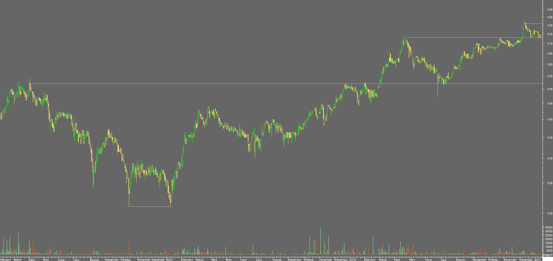 2º higher high ~0.82 em finais de 2016 (confirmação de bull de longo prazo)