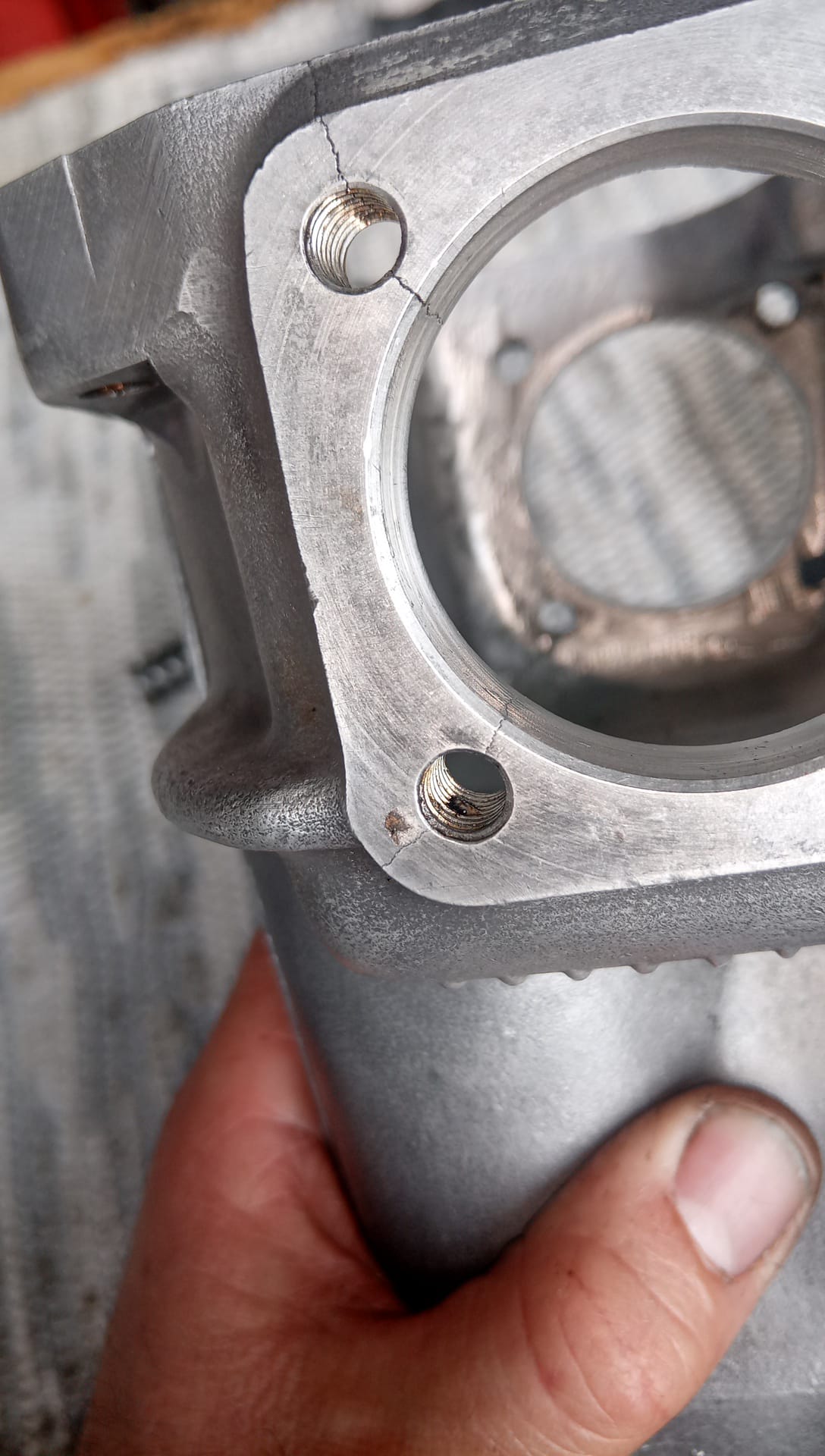 A minha como as imagens mostram está estalada e não sei se é possível soldar, como é de alumínio ou uma liga parecida.