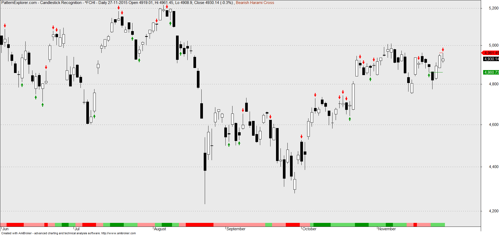 o meu gráfico: ainda que nalguns casos marginalmente, o índice continua a desenhar baixos mais baixos e altos mais baixos