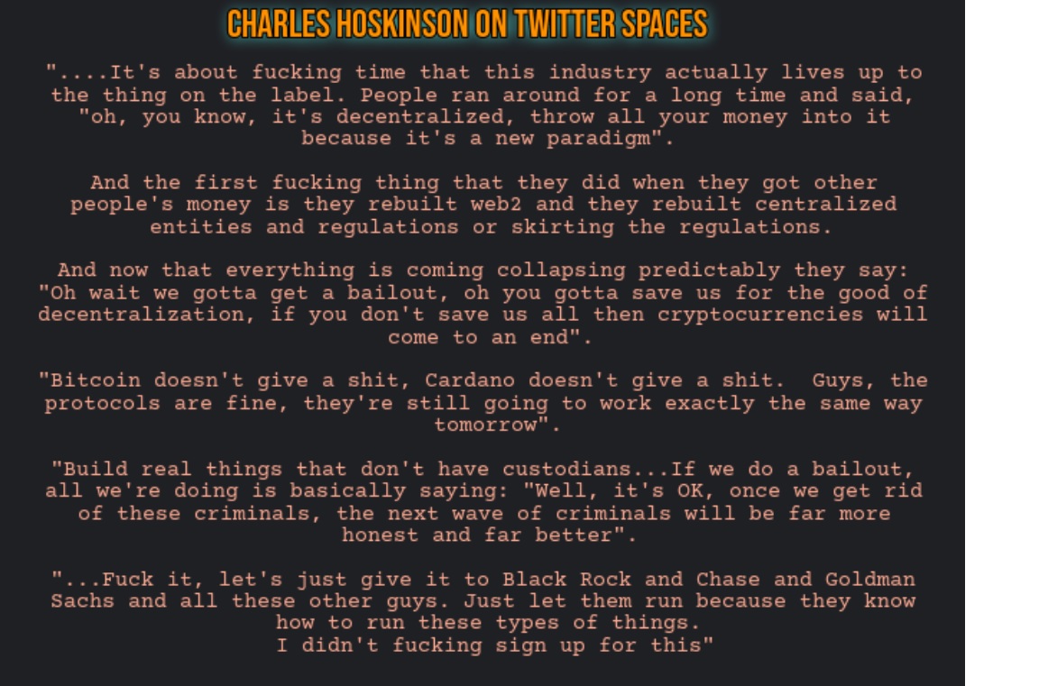 Eu concordo com a afirmação até porque uma exchange é uma entidade centralizadora completamente oposta ao fundamento de Bitcoin. Isto gera desconfiança e criará uma limpeza no mercado, espero eu, até para o que emergir daí seja o que tem mais valor e os investidores sejam mais escrutinadores dos projetos e do valor em vez de meterem as suas poupanças de vida em Dogecoin ou Shiba ou raio que os valha a achar que estão a comprar realmente alguma coisa.