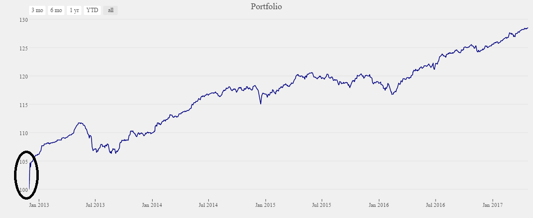 A diferença e a razão pela qual algum deste fundos não entraram na carteira 4Fundos (principal) é não terem histórico de 2008. A semelhança de performance poderá ser vista no gráfico em anexo. Os testes começaram em 2013-05-10, data em que todos os fundos estavam no activo. A 4Fundos teve desde esta altura uma rentabilidade de 5.71% e a 8Fundos 5.74%. Tendo em consideração que são carteiras 70% obrigacionistas (e por isso conservadoras) e que o teste começa mesmo antes de uma queda de 6% (Verão de 2013 foi o Taper Tantrum) considero que é uma boa performance.