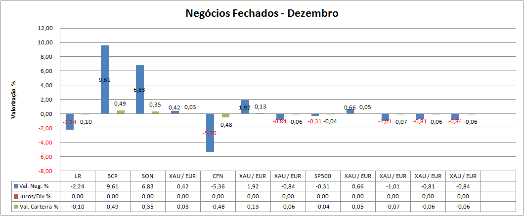 Só em Novembro recuperei os valores de a que chegara em Fevereiro, terminando o ano com um resultado de 8,8%. Este resultado é Suficiente tendo em conta os objetivos da Carteira, (Fazer melhor que os DP), mas insatisfatório quando comparado com os mercados em que estamos investidos.