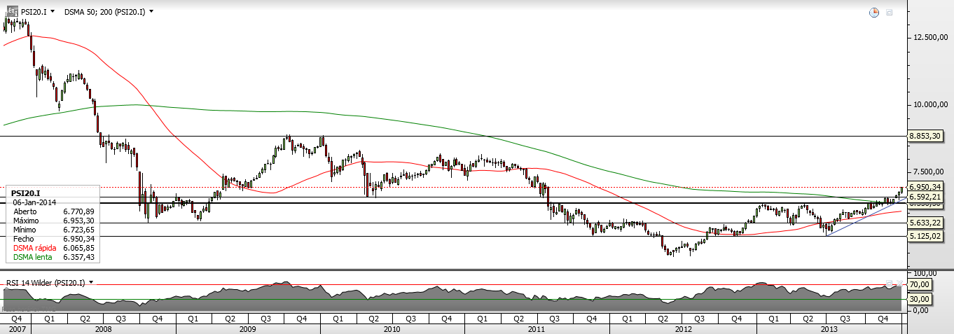 As 3 apostas, PSI20, para o inicio de ano 2014 estão a testar anteriores máximos...