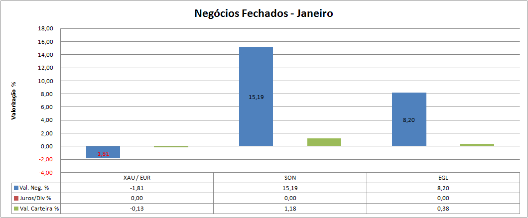 Durante este período experimentei negociar Ouro (Xau/EUR), sendo o ativo mais negociado e sempre com estratégia de curto prazo – como resultado obtive um ganho médio de 0,01%. Este resultado, obriga-me a refletir sobre a pertinência ou o horizonte temporal deste tipo de investimento. Apesar de ter estado sempre do lado da tendência primária não consegui retirar daí dividendos pelo que se concluo que a estratégia utilizada não é a melhor.