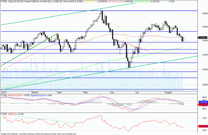 O FTSE precisa de ultrapassar a zona dos 6460, para quebrar um pouco este downtrend.