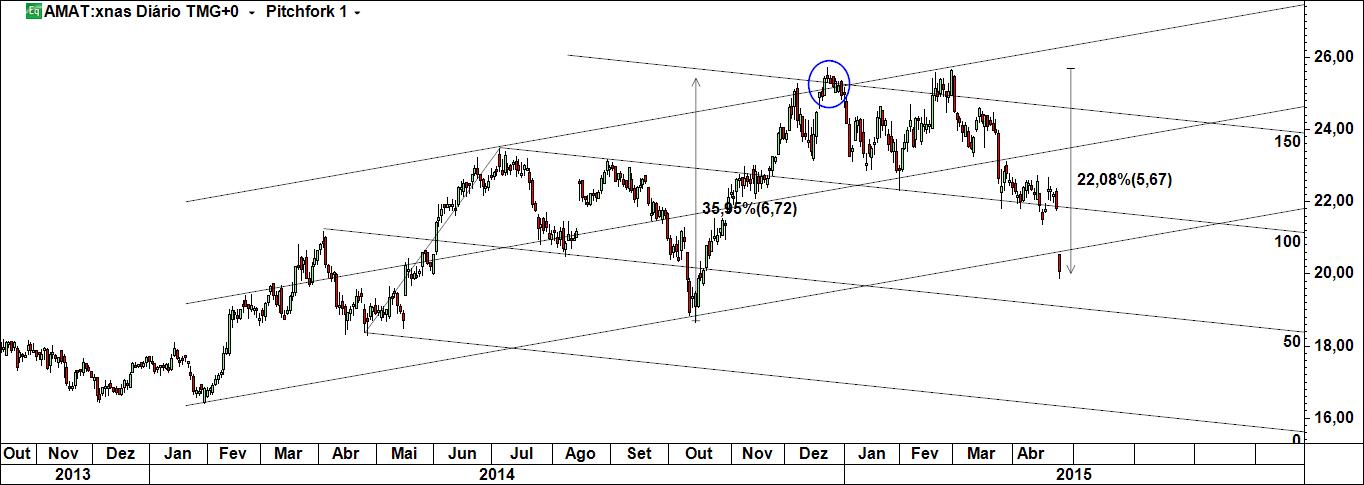 O Alquimista Escreveu:Actualizando um gráfico do psi20, apresentado em 24-10-2014 no respectivo tópico, mas agora apenas com o fork, servindo para exemplificar a regra 4: When prices reverse before reaching the ML, leaving a “space”, they will move more in the opposite direction than when prices were rising toward the ML.