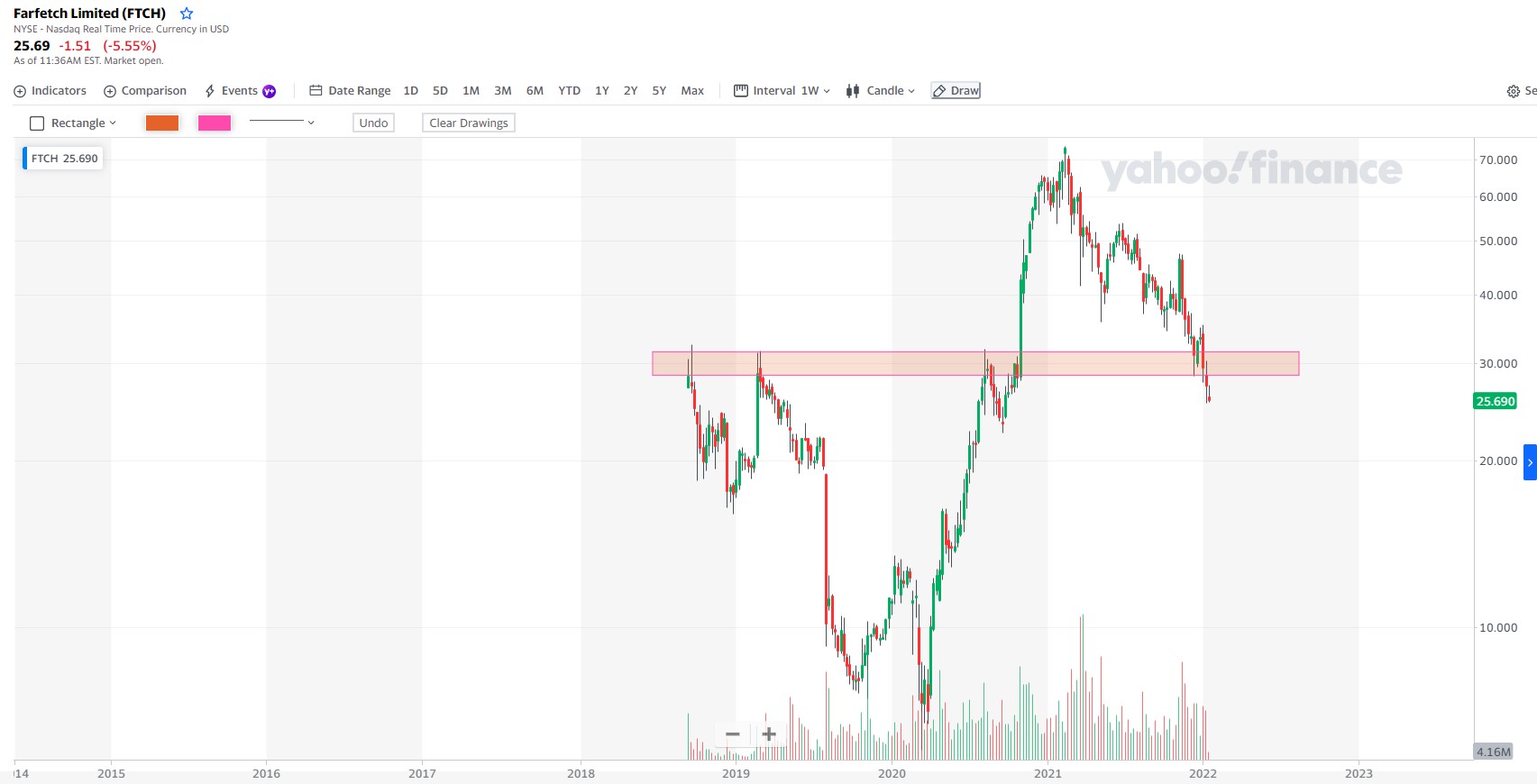 Penso que nesta zona o RR é razoável, mas claro que se o mercado continuar a cair, a farfetch cai ao dobro da velocidade.