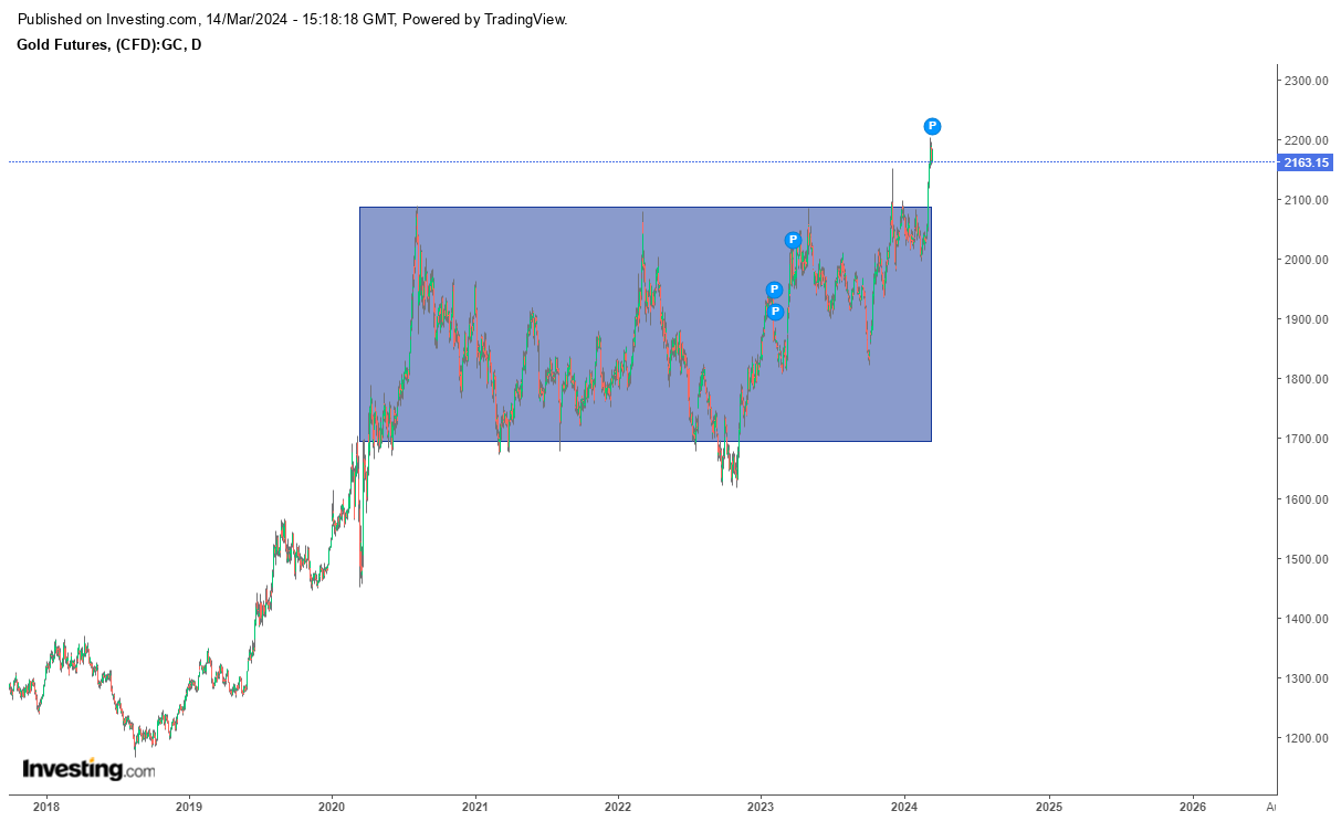 Não só no próprio ouro como no "ouro digital", o BTC, tal como se anunciava. Para não falar dos inevitáveis Nvidia, Super micro computer ou AMD, só para falar dos principais...