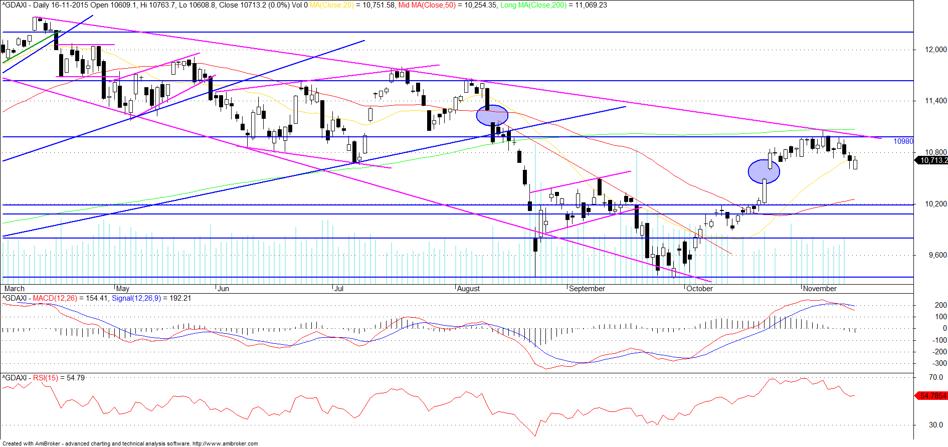 os mercados na europa corrigiram debaixo de niveis importantes, saindo da estado de sobrecomprado em que se encontravam e estão agora a testar a zona de breakout gap.