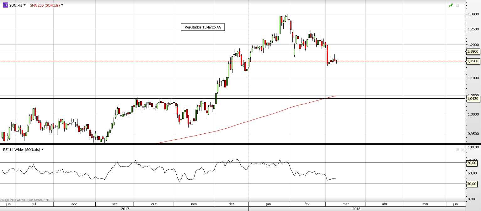 Nesta cotada esperam-se bons resultados pelos indicadores das vendas, no entanto após estas fortes correções gerais não tem demonstrado força e volume para recuperação.