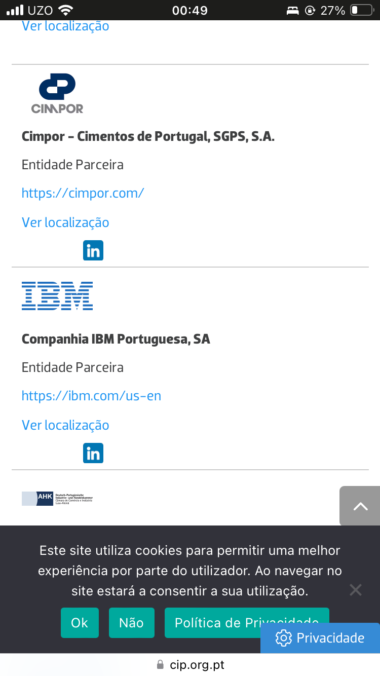 As principais empresas em Portugal estão representadas na cip: altice, Galp, ren, bpi, Santander, cimpor, ibm etc