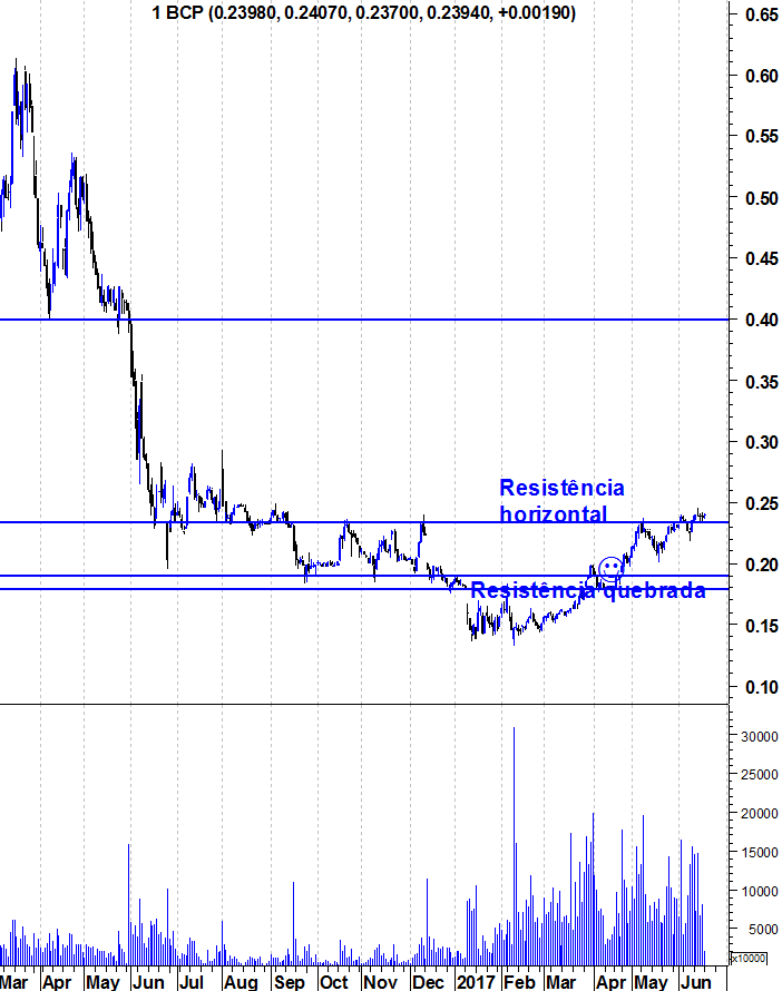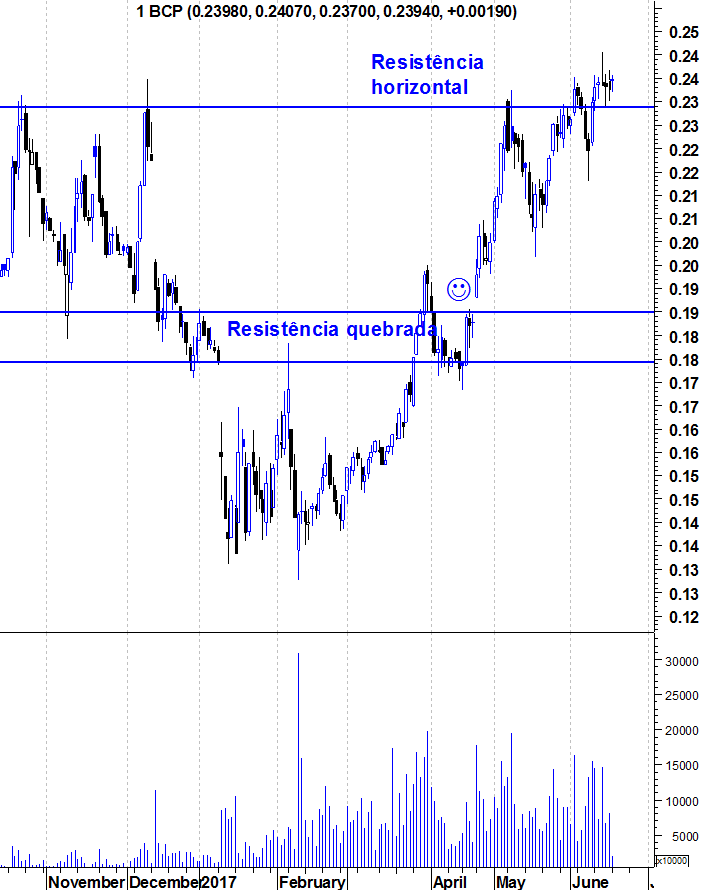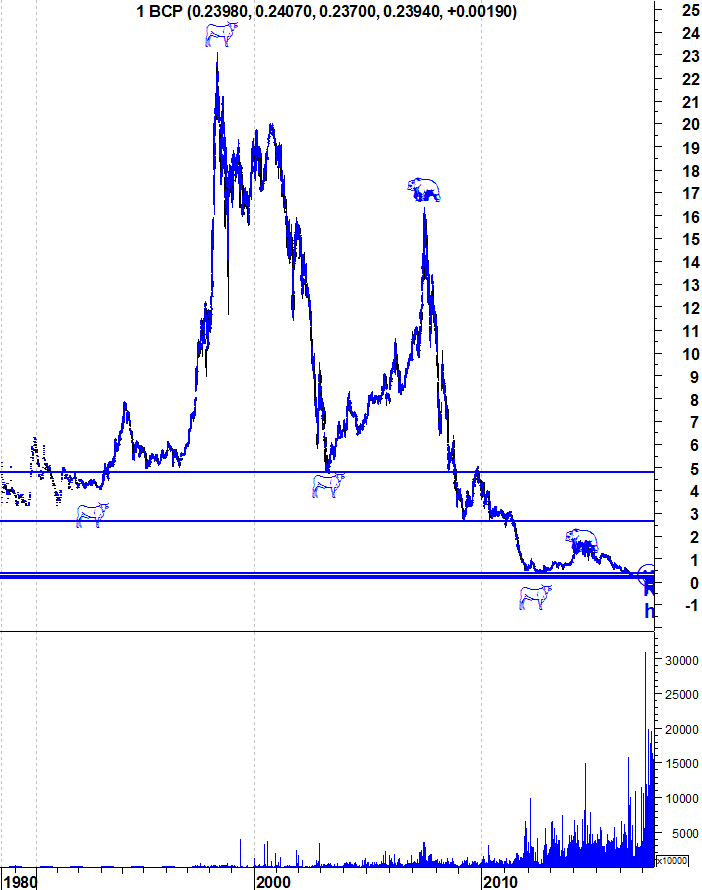 Como digo acima, não me parece que o BCP tenha força para passar os 0,24 sem ir novamente ganhar fôlego.