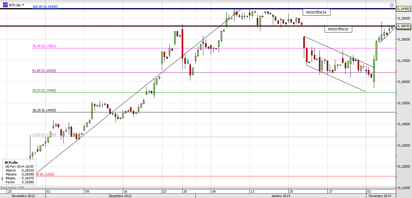 Como já disse eu olho para o gráfico e estabeleço os meus planos de trading com base neles, estas conversas são paralelas, atrevi-me a falar um pouco disto apenas para espicaçar o Investpouco, para ver se retirava dele alguma informação interessante. Até ao momento nada, não respondeu à única pergunta que lhe fiz, não explicou como chegou ao target dos 50 cêntimos no final deste ano, em suma, não fundamentou nada... dessa foram para que serve alguém dizer aqui que acha que o BCP vai faler X no final do ano?? Seja X 12, 30, 50 ou 80 cêntimos... se por acaso chegar aos 50 cêntimos este ano (como disse seria uma grande surpresa para mim, mas ainda bem!) o que é que isso nos ensinará? Nada, ele falou nos 50 cêntimos como eu posso falar nos 60, ou nos 12, sem fundamentos que nos possam ensinar alguma coisa, este tipo de palpites são idênticos a eu dizer que nesta semana, no Euromilhões, vão sair os números 23 e 37... os outros não digo!