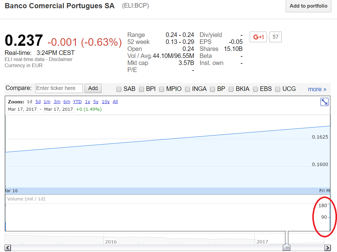 No fecho de 17/3/2017 foram negociadas ~174M ações do bcp: