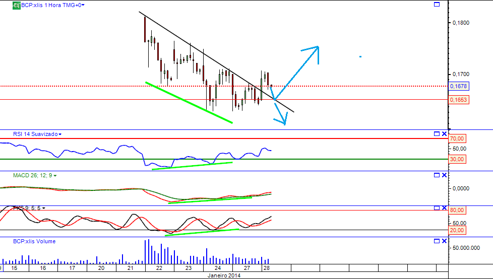 Se de facto sobe, para mim a maior relevancia é o fraquissimo volume, o que me colocou por agora de fora desta ação. PArece-me que a correção ainda não foi toda feita, para novas subidas sustentadas. Mas de um momento para o outro tudo pode mudar. Vamos acompanhando.