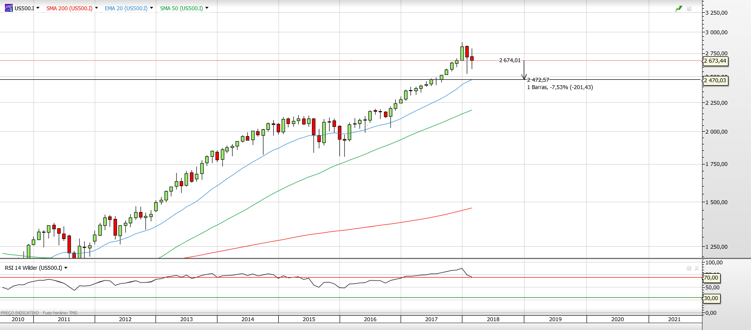 O SP500 pode andar aqui mais algum tempo a namorar a MM200 no diário nos 2590, mas poderá ser somente uma questão de tempo até vir para níveis bem inferiores