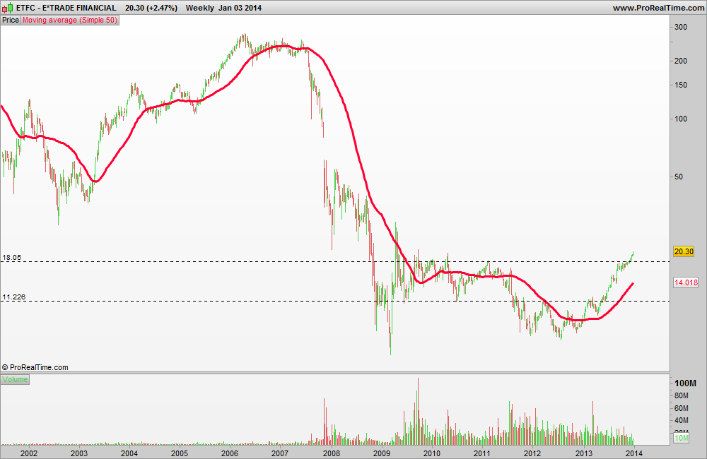 O Pepe postou aqui BAC e C, acima têm a ETFC que foi colocada ontem no diario e semanal. Ponho agora um grafico maior da ETFC semanal, pois o stockcharts não tantos meses para trás, pelo menos na versão "free" e a LLOY do nosso Horta Osório. Verão que são todos semelhantes.