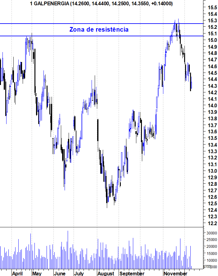 Deixo aqui os gráficos actualizados da GALP com a zona de resistência mais claramente definida.